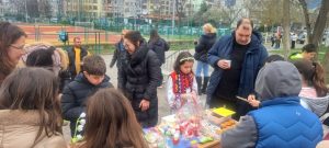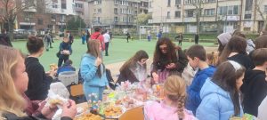 Благодарение на Вас този ден се превърна в истински празник – пъстър, усмихнат и изпълнен с надежда. С Вашата подкрепа, отдаденост и щедрост направихме значима крачка към осъществяването на една обща мечта – изграждането на външна сцена в двора на училището – място, където талантът на децата ще оживява, а училищният дух ще се споделя и празнува. Събраната сума от великденския базар е 4746,74 евро.