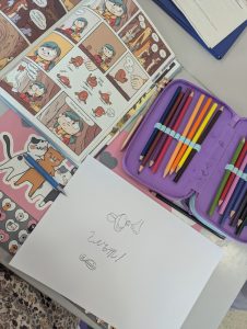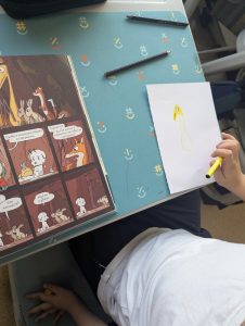 А в класната стая – развълнувани деца, които слушат внимателно и следят с пръстчета балончетата на комикса.