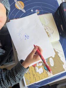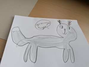 Днес четохме и рисувахме „Хилда и Съчко – Подслон в дъжда“.