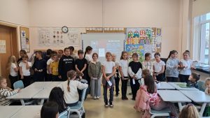 В края на срещата третокласниците изпълниха песента „Ден на будителите“, с която създадоха празнично настроение и вдъхновиха своите малки приятели да пазят и почитат делото на българските будители.