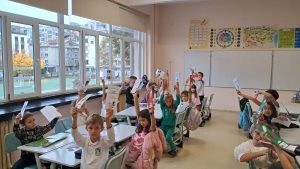 Те зарадваха първокласниците като им подариха – книгоразделители и книжки, жест с който ги насърчиха да четат, да откриват нови светове и да обичат книгите.