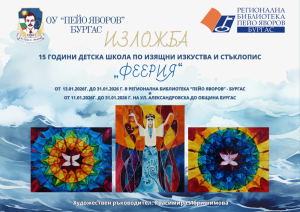 Детска Арт школа по стъклопис „Феерия“ към ОУ „Пейо Яворов“ – Бургас, с ръководител Красимира Ибришимова, представя своята изложба в рамките на Яворовите дни и по повод 15 години творчество, мечти и талант.