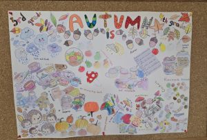 С много въображение, труд и настроение, децата описаха есента така, както я усещат – топъл чай и горещ шоколадинтересна книгатопли чорапкидъжд и шарени чадъригъбки, кестени, тикви, плодове и домашно приготвени бисквити.