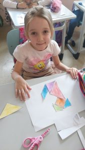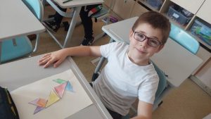Учениците от 1. Б клас творят с танграми в час по ФУЧ – математика