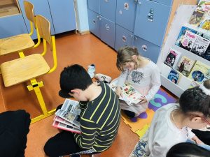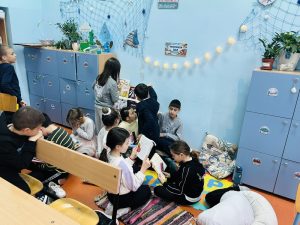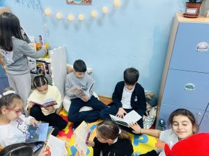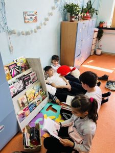 На 14 април учениците от 3. „Б“ клас, заедно с госпожите Фатме Мехмед и Елеонора Йорданова, с голям интерес посетиха нашия нов „Читателски кът“.
